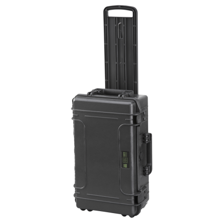 520 x 290 x 200. Deze stevige trolleykoffer is ideaal voor het beschermen van waardevolle apparatuur tijdens opslag en transport. Het meegeleverde plukschuim maakt maatwerk mogelijk voor een perfecte pasvorm. De robuuste, dubbel vergrendelende sluitingen bieden optimale veiligheid maar zijn toch gemakkelijk te openen. Met een IP67-classificatie biedt de koffer effectieve bescherming tegen zowel stof als water. Het automatische drukventiel houdt de interne luchtdruk gelijk met de omgeving. Dankzij het handvat en de wielen is de trolleykoffer eenvoudig te vervoeren.