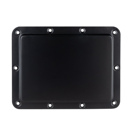 voor zelfklevende tourlabels. Monteer deze zwart stalen, verzonken inbouwschotel op een flightcase en plak het separaat verkrijgbare zelfklevende tourlabel erin om de inhoud van de koffer gemakkelijk te kunnen identificeren zonder deze telkens te moeten openen.
