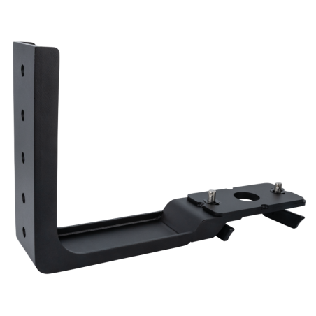 Zwart - metaal. Deze L-beugel voor de Raccoon S250/4 en W18/4 Junior kan worden gebruikt om de fixture verticaal of onder een hoek te monteren, terwijl hij toch in balans blijft (geen torsiekracht op het bevestigingspunt).