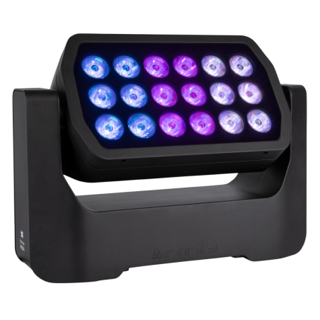 Professionele wash met gemotoriseerde tilt. De Infinity Raccoon W18/4 Junior is een krachtige washlight met een gemotoriseerde tilt-functie en 18 RGBM LED's van 15 W elk, die meer dan 18.150 lumen produceren. De lamp heeft 3 afzonderlijk regelbare secties, een stralingshoek van 10 graden en een hoge verversingsfrequentie van 12.000 Hz voor een gelijkmatige en stabiele lichtopbrengst. Er zijn vier interne dimcurves beschikbaar. Hij maakt gebruik van dezelfde behuizing als de Raccoon S250/4 en heeft een IP65-classificatie om bestand te zijn tegen de elementen tijdens je show.