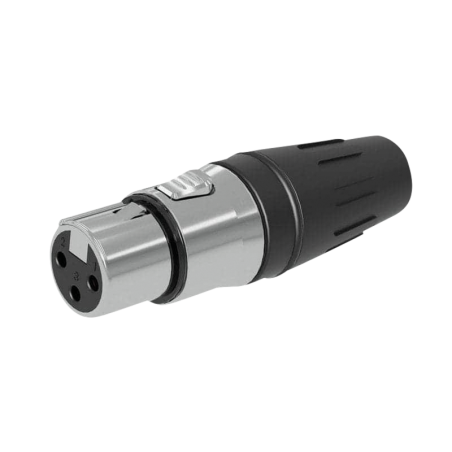 Vergulde contactpunten - roestvrij stalen behuizing. De SCHF3 is een 3-pins XLR-female kabelconnector met een verchroomde, roestvrijstalen behuizing en vergulde contacten. Hij is voorzien van een nieuw ontworpen aardingssysteem voor verbeterde contactstabiliteit en een verbeterd, geoptimaliseerd mechanisch ontwerp. De kap heeft een groef voor kleurcoderingringen. De connector is bestand tegen vallen, druk en dagelijks gebruik.